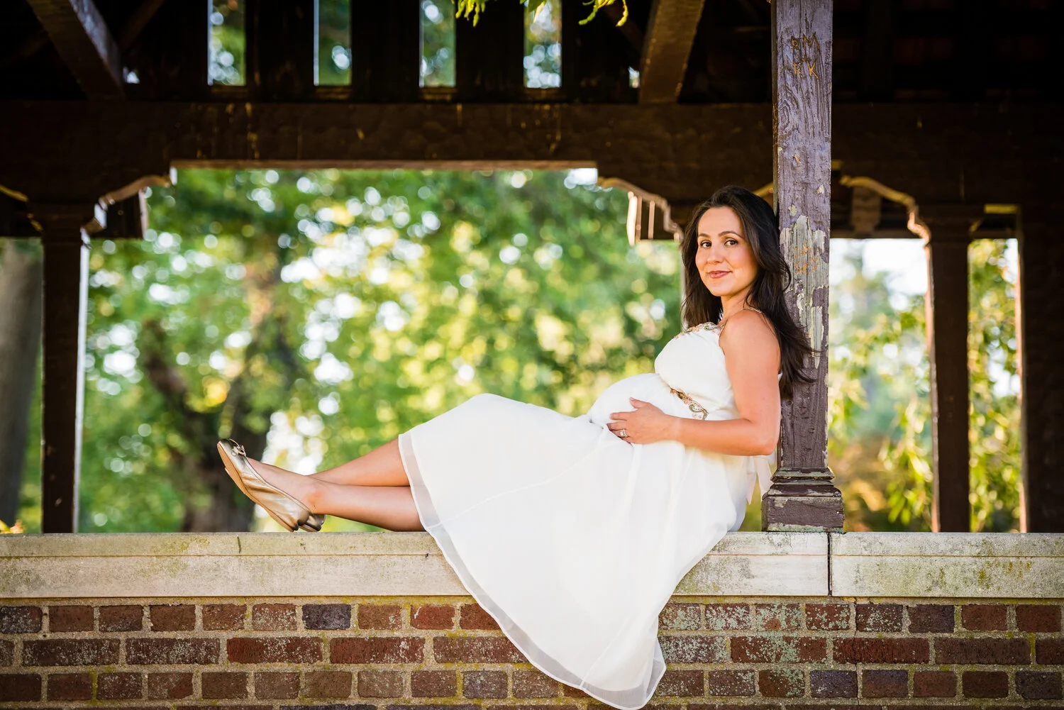 Golden Hour Maternity Portrait Session at Waveny Park